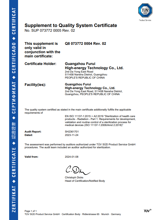 < 醫療用品 >輻照消毒滅菌